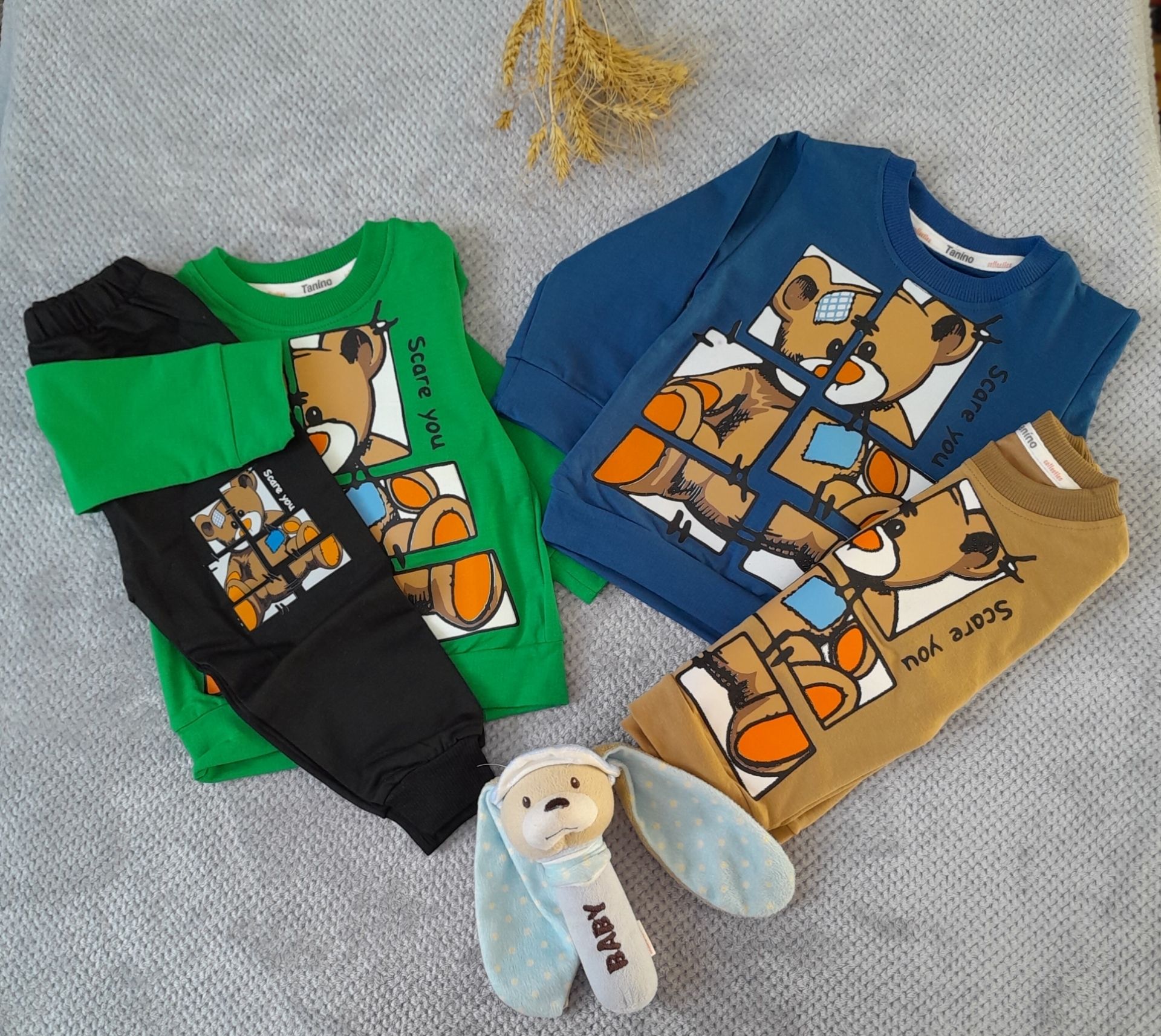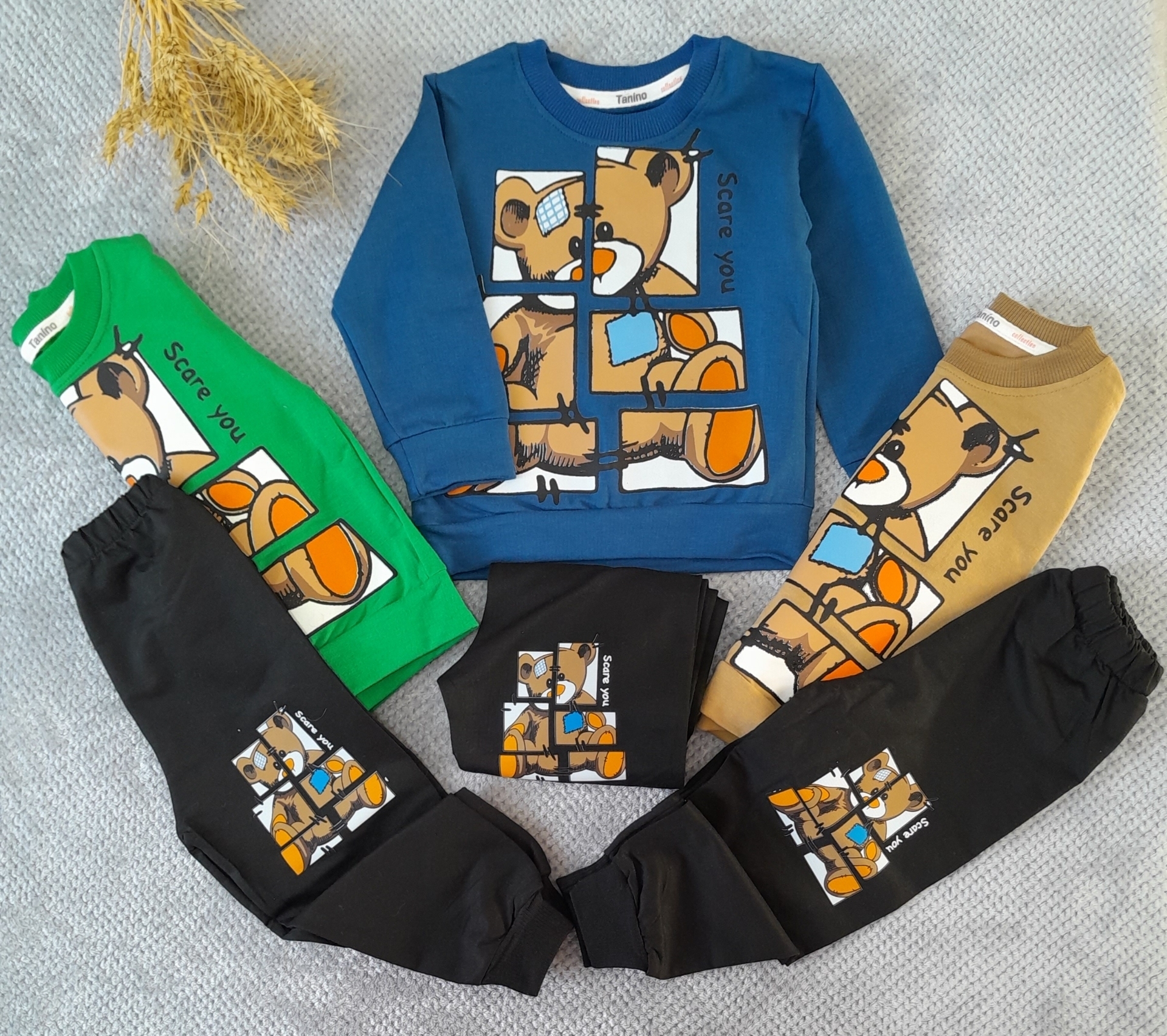 بلوز و شلوار خرس پازلی ✅جنس دورس پنبه✅شلوار اسپان✅رنگ بندی مطابق تصویر ✅سایز:سایز ۳۵:پهنا ۲۷ بلندی ۳۴ شلوار ۴۷سایز ۴۰:پهنا ۳۱ بلندی ۴۱ شلوار ۵۴حدود یک سانت خطا اندازه گیری رو در نظر داشته باشیدرنگ کار به دلیل عکاسی ممکنه یک یا دو رجه فرق کنه با عکس